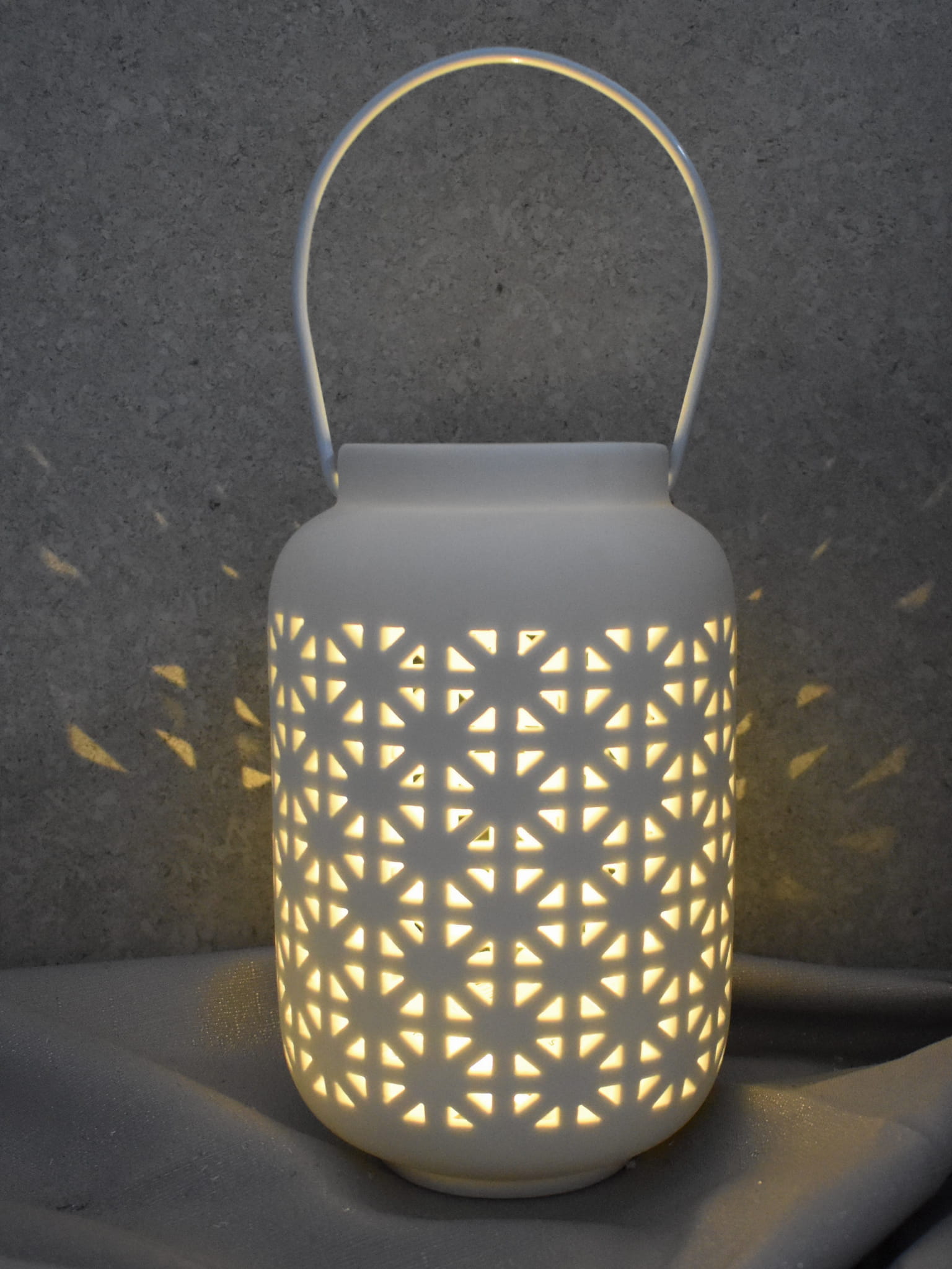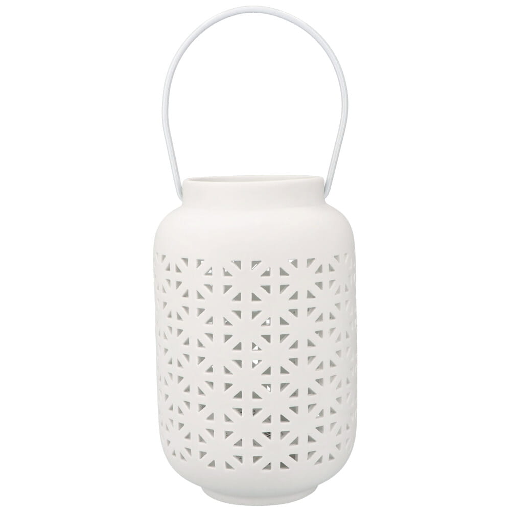 Pełen uroku biały lampion wykonany z ceramiki, z oświetleniem LED
